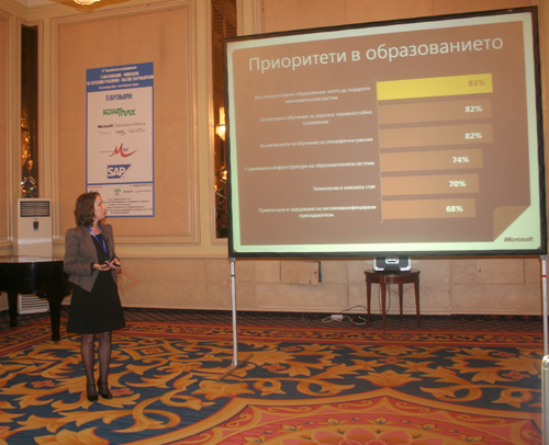 Първата презентация след приветствията беше на Орлин Кузов, директор дирекция Информационни и комуникационни технологии в Министерството на образованието, младежта и науката. Той повдигна ключовия въпрос, че вече учениците и студентите са в центъра на образователния процес. Те са тези, които избират, а всички около тях – преподаватели, администрация, бизнес и т.н., на конкурентен принцип се опитват да привлекат вниманието им.